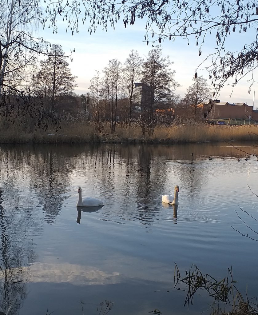 Bilden på svanarna nedan har stort skärpedjup: allt syns ungefär lika tydligt. Jag tycker att det blir tröttsamt eftersom det inte finns något att fästa blicken på.